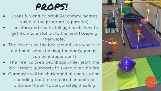 If props become a distraction, it’s time to modify the station with something else. Your gymnasts are giving your valuable feedback: your plan isn’t working and it is time to change it.